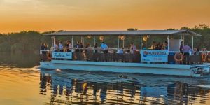 Kununurra Cruises, Kununurra, The Kimberley Lake Kununurra Sunset BBQ Dinner – Shared Tour Inclusions: Hotel pick up and drop off, nibbles, 2 course dinner (main with selection & dessert), beverages (alcoholic and non-alcoholic). On this 3 hour experience you will spend the afternoon cruising on Lake Kununurra. As the vessel winds its way through Lily Creek and out into the open water of Lake Kununurra, the picturesque lagoon will have you reaching for your camera. Views of Sleeping Buddha will be enjoyed from Lake Kununurra before the vessel turns towards the Diversion Dam as the sun sets. Appetizers will be provided, and once the vessel reaches the sunset dinner location in Packsaddle Lagoon, you will be able to soak up the tranquility as you enjoy your Kimberley-inspired dinner. Upon return to the Marina, you will be transferred back to your Kununurra accommodation. |